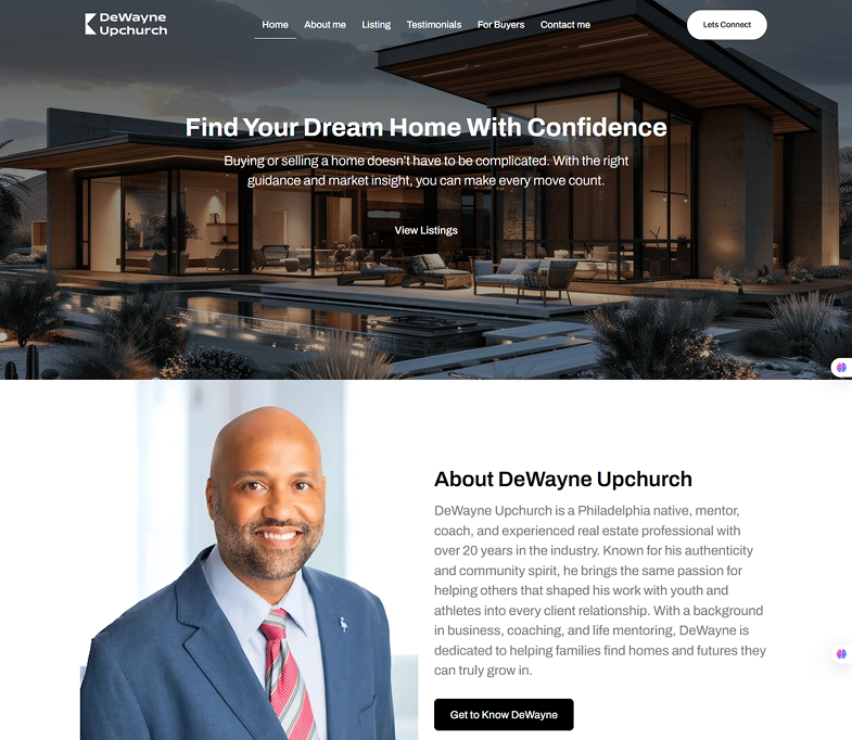 The site elevates DeWayne’s premium listings, local expertise, and personalized services through a clean, refined layout.